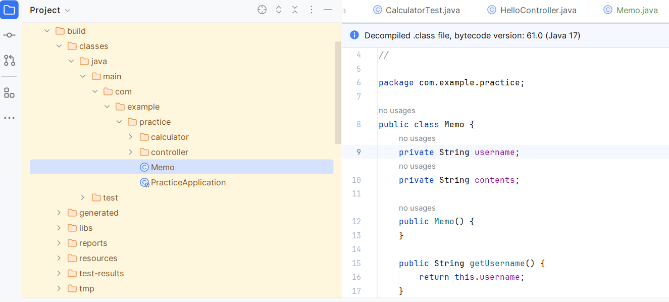 2023-11-02T16:26:35.574+09:00 INFO 5384 --- [ main] c.example.practice.PracticeApplication : Starting PracticeApplication using Java 17.0.9 with PID 5384 (E:\\Workspace\\IntelliJ\\practice\\build\\classes\\java\\main started by USER in E:\\Workspace\\IntelliJ\\practice)