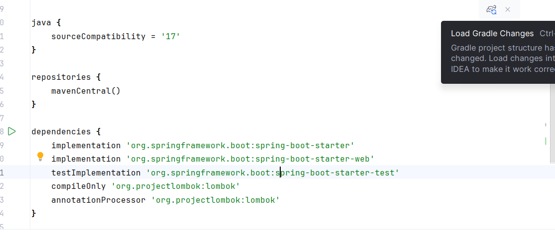 오른쪽에 Load Gradle Changes 눌러줬더니 됐음