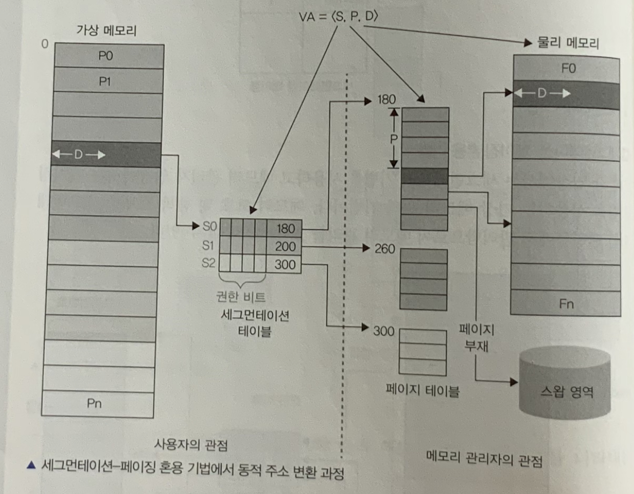 가상 주소 VA = <. S, P, D>를 구한다