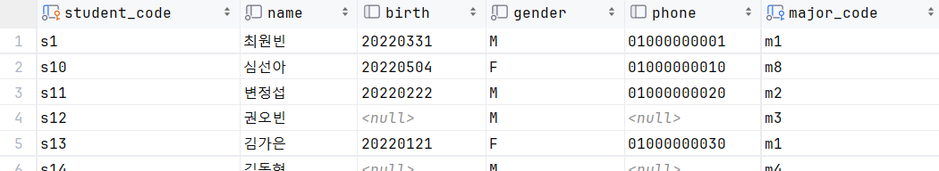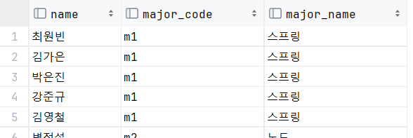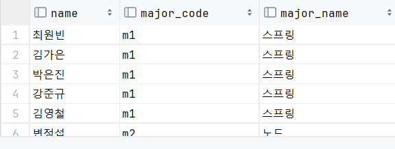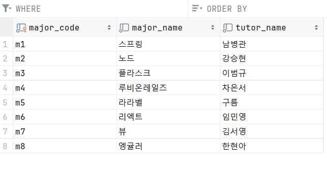 MAJOR 테이블