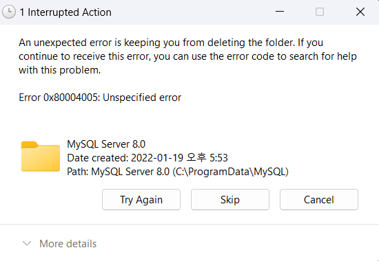 프로그램 파일 폴더에 있는 것도 다 삭제하고 다시 깔았다