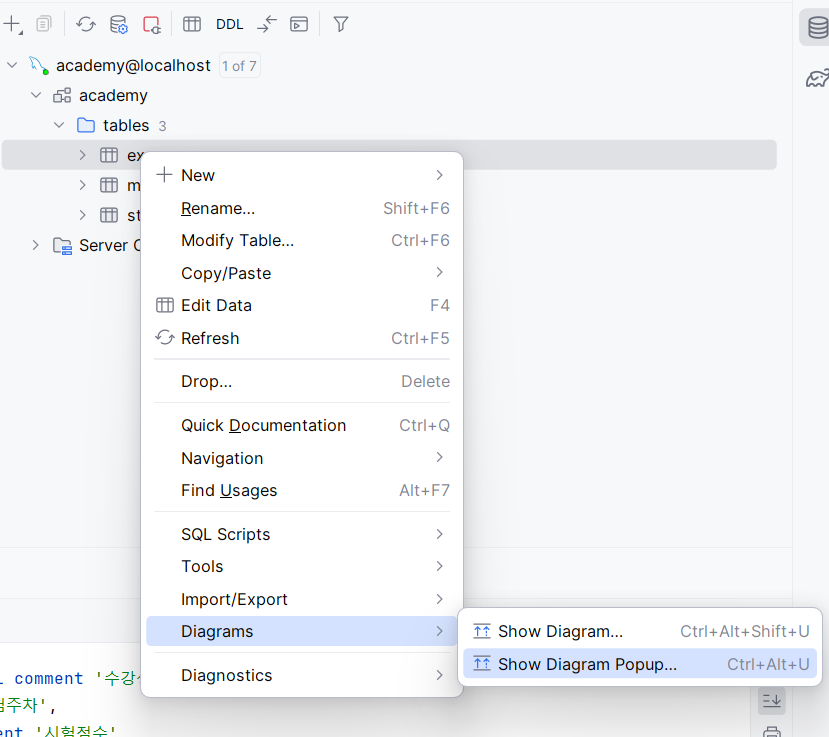 인텔리제이에 연결, 테이블 생성