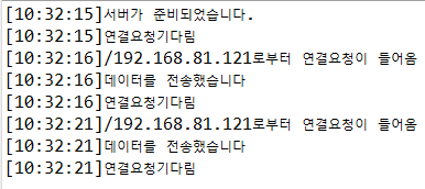 //서버소켓은 클라이언트 연결요청 올때까지 기다림