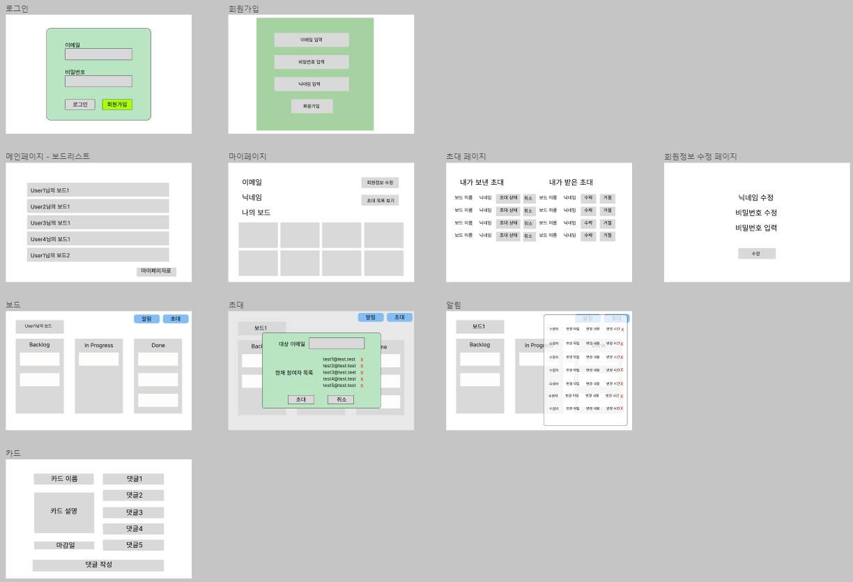 - 특정 사용자들을 해당 보드에 초대시켜 협업을 할 수 있어야 합니다.