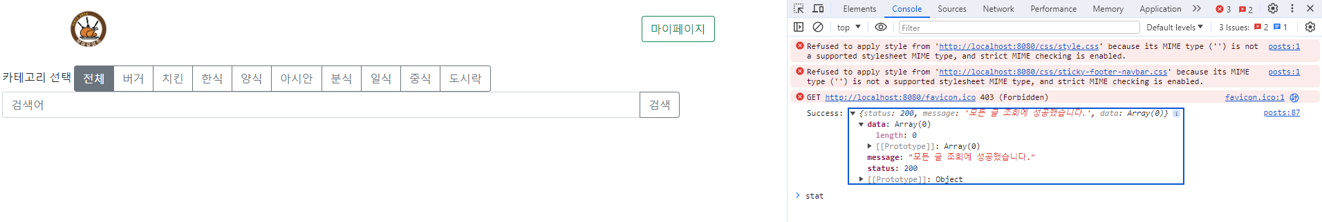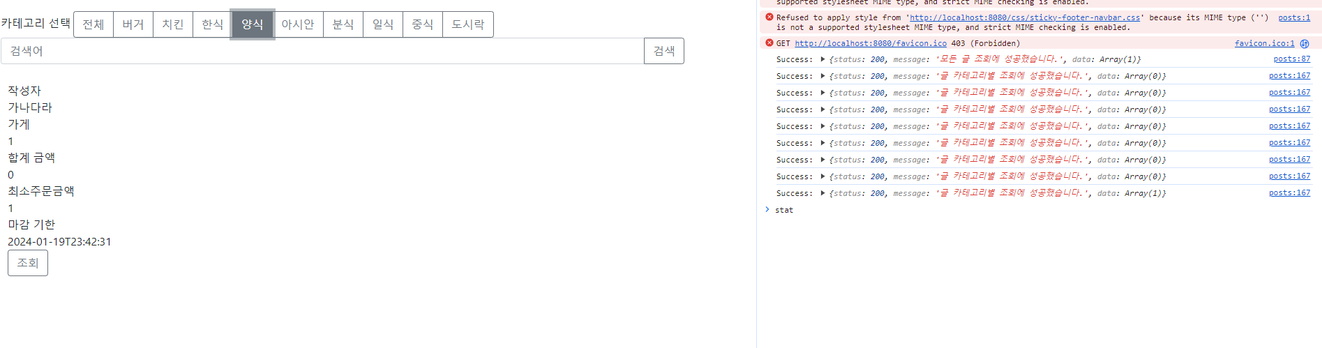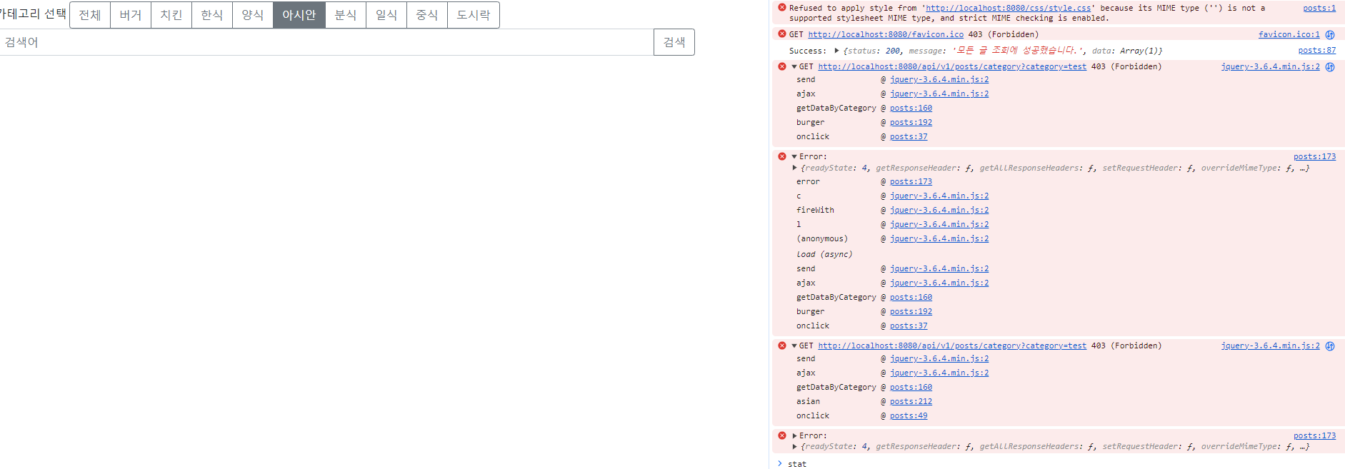 카테고리 누를때마다 에러가 뜸!