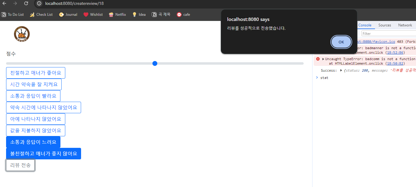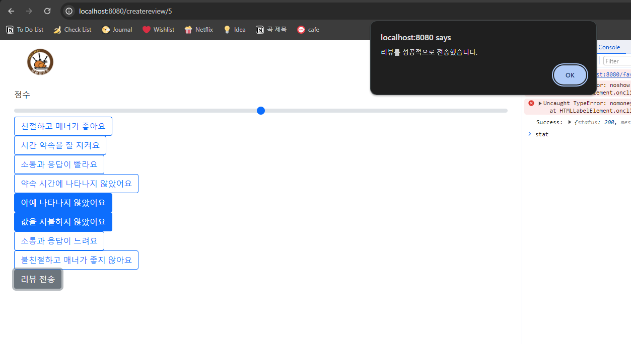 🚩문제 : createReview가 안 불리는듯? 인식이 안 됨