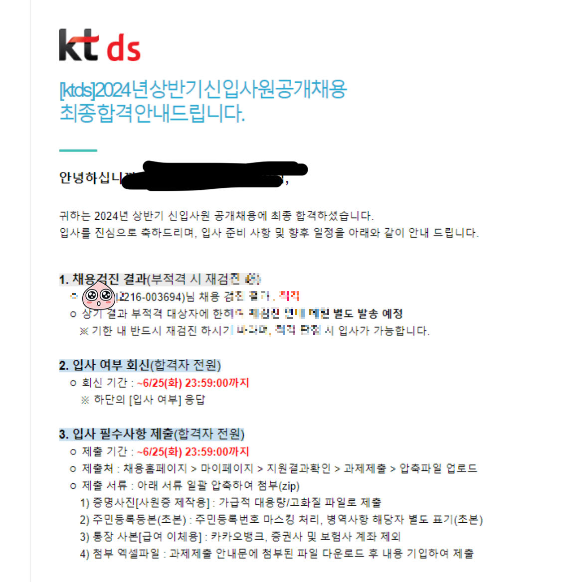 서류 인적성코테 pt면접 과제제작 1차면접 채용검진 2차면접을 준비하면서 회사에 대해 점점 더 많이 찾아보게 되었고 시간과 노력을 많이 투자해서 화사에 입사 전부터 애착이 생겼었다
