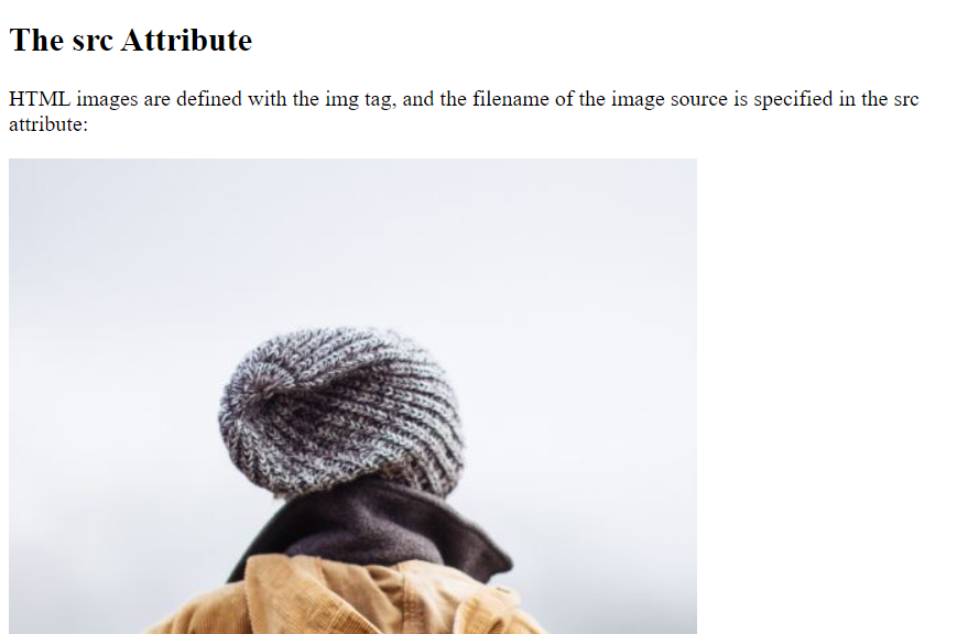 <p>HTML images are defined with the img tag, and the filename of the image source is specified in the src attribute:</p>