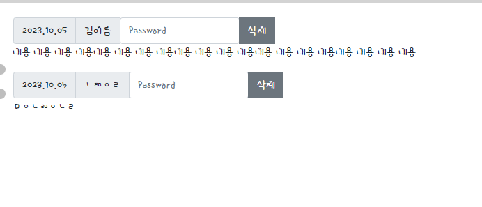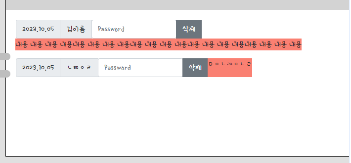 문제 5 : 이런 식으로 내용이 짧을 경우 삭제버튼 바로 옆에 가서 붙는 문제가 있었는데
