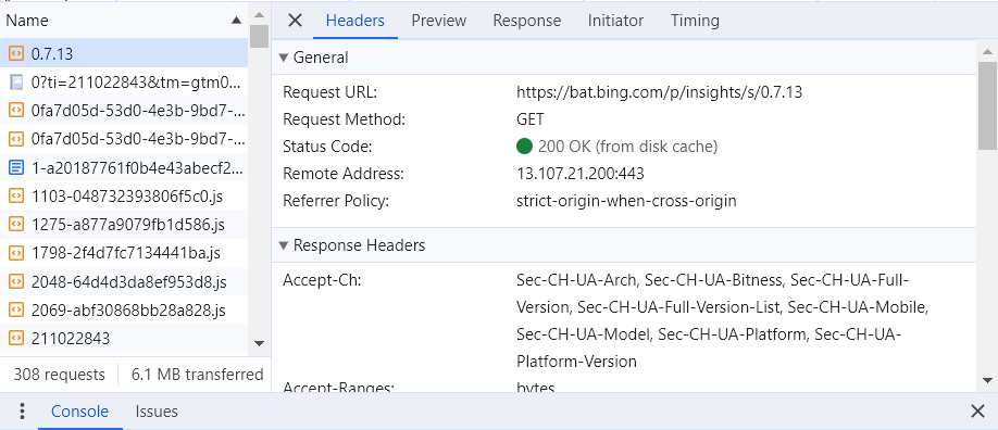 3) Headers 탭 살펴보기