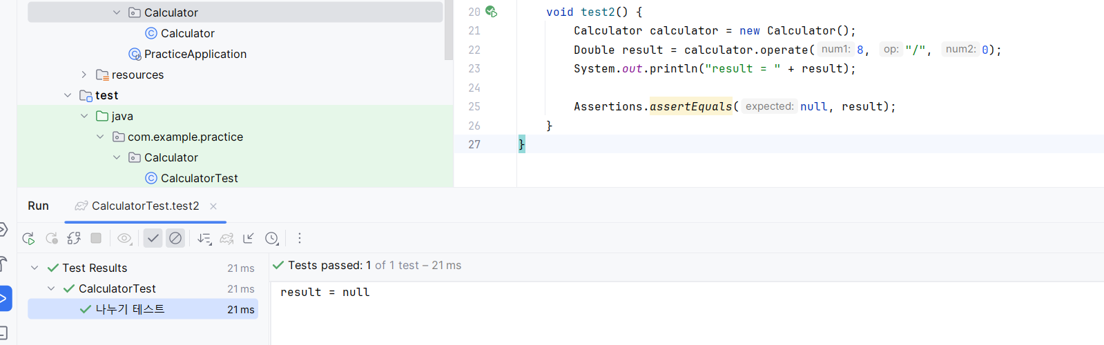 나누기 테스트도 수행