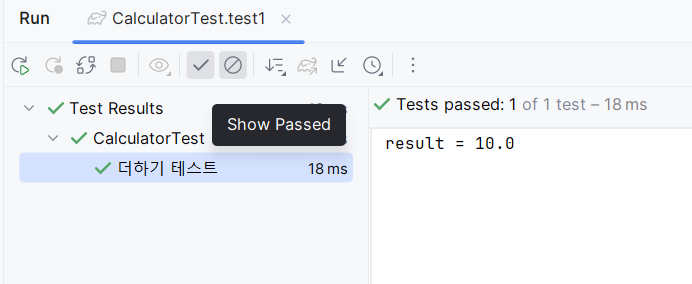 테스트마다 각각 Run버튼이 좌측에 생기기 때문에 따로따로 테스트할 수 있다