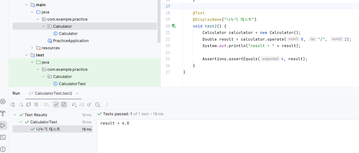 테스트코드에 main함수가 없는 이유는 JUnit이 테스트 실행 환경을 따로 가지고 있기 때문이래